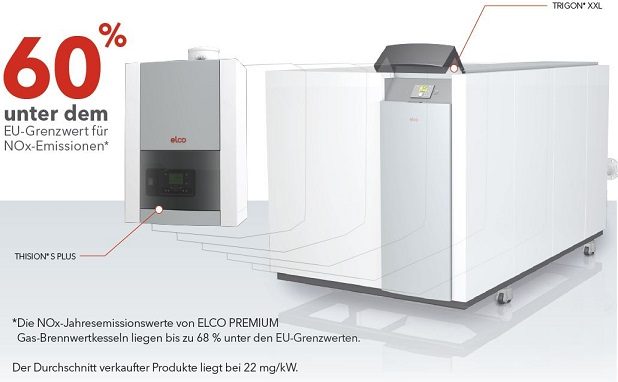 From the largest commercial units to our premium range of domestic boilers, all ELCO products are designed to significantly reduce NOx emissions. ELCO products are 60% below the EU limit for NOx emissions.